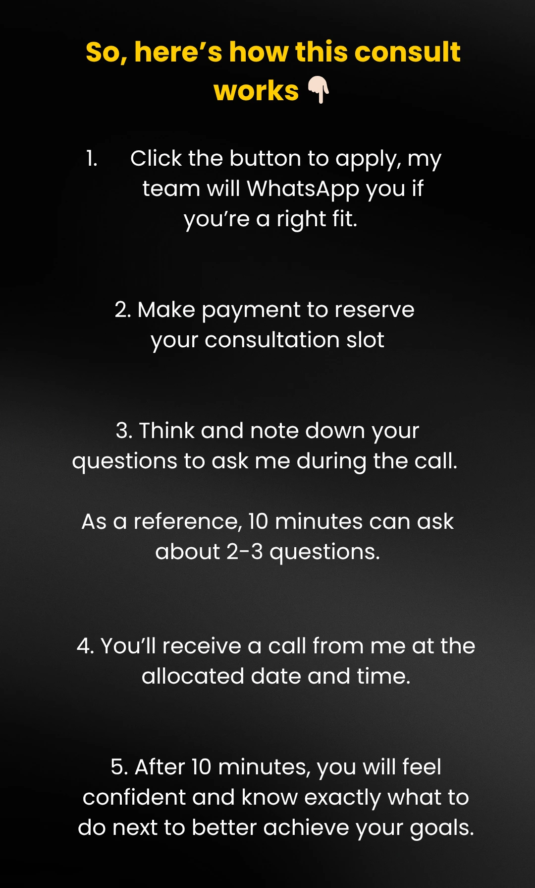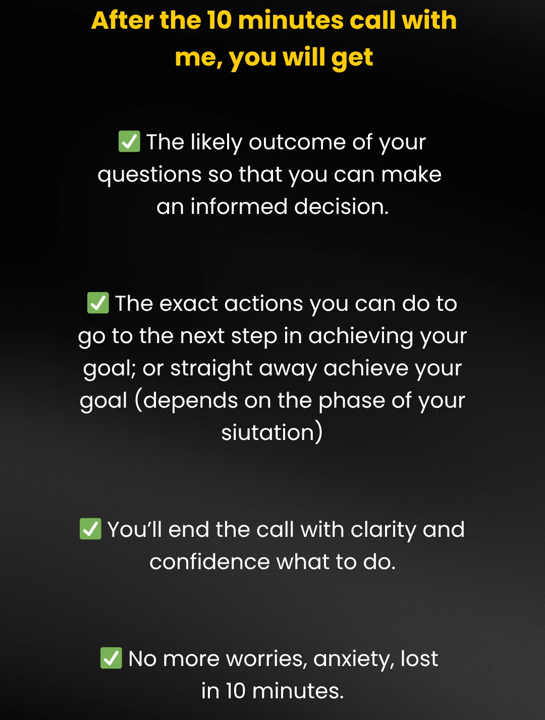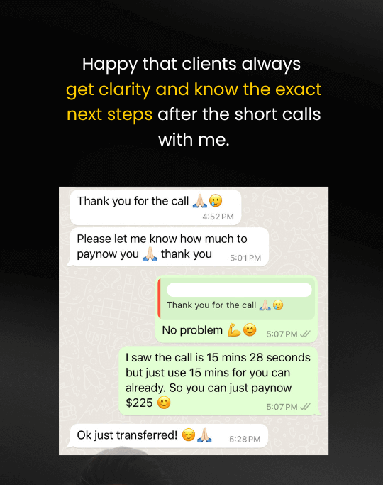 DISCLAIMER: All income and success examples are based on my experience and the experiences of my clients. They are not guarantees. Your outcomes vary, depending on your background, commitment, skills, and actions. You may achieve less, the same, or more than the examples provided. These examples are provided to show what is possible, not to guarantee any specific outcome.